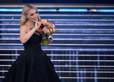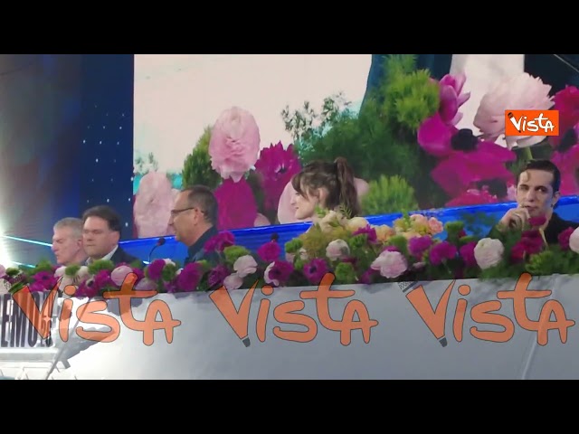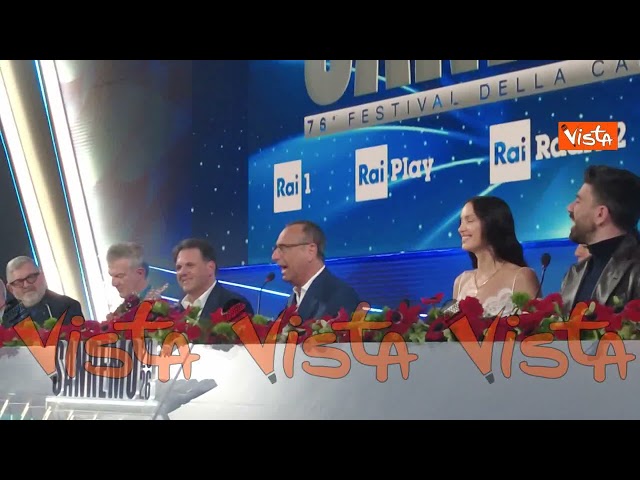 La co-conduttrice ha aperto la puntata presentando il direttore artistico Carlo Conti. Sul palco Gianluca Gazzoli e i semifinalisti della “Nuove proposte”