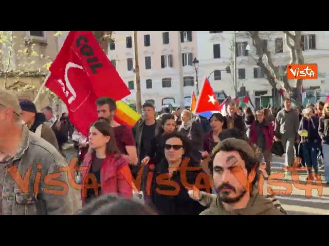 Partecipazione più alta del previsto per il corteo: bandiere per la Palestina e cori contro il governo