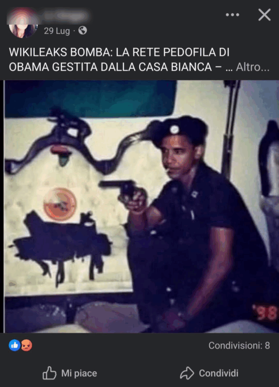 Il testo che accompagna la falsa foto di Obama racconta anche che le forze speciali statunitensi avrebbero fatto irruzione nei sotterranei della Casa Bianca, trovando gabbie, tunnel e bambini vittime di abusi. Nessuna fonte ufficiale o indipendente ha mai confermato un’operazione del genere. Il Dipartimento della Difesa ha più volte smentito storie simili, che fanno parte di una narrativa complottista molto diffusa negli ambienti QAnon. In passato, queste voci hanno portato anche a episodi reali di violenza: nel 2016 un uomo armato fece irruzione in una pizzeria di Washington convinto di “salvare bambini” imprigionati nei sotterranei, che ovviamente non esistevano.
