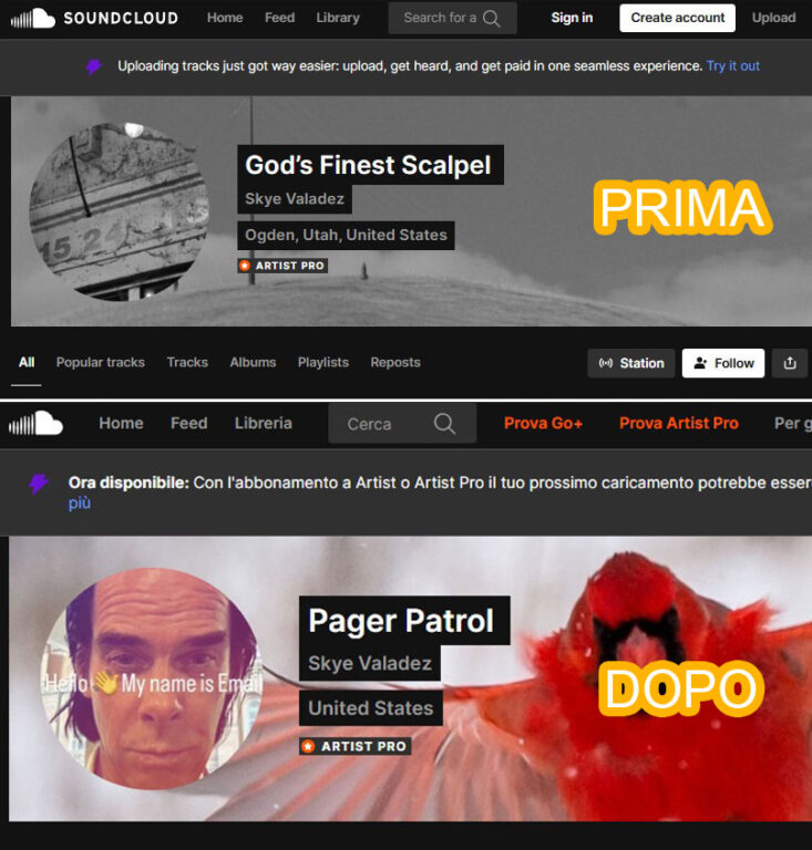 Dopo la scoperta della canzone, e l’inevitabile bombardamento da parte degli utenti che lo accusavano di essere l’attentatore, il profilo Soundcloud è stato modificato. Il nickname è diventato “Pager Patrol”, i riferimenti allo Utah sono scomparsi e l’immagine del profilo è stata sostituita con un meme in circolazione da anni. È rimasto, curiosamente, soltanto il nome “Skye Valadez”.