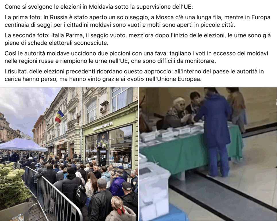 La prima foto: In Russia è stato aperto un solo seggio, a Mosca c’è una lunga fila, mentre in Europa centinaia di seggi per i cittadini moldavi sono vuoti e molti sono aperti in piccole città.