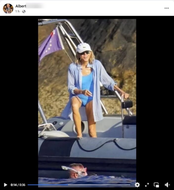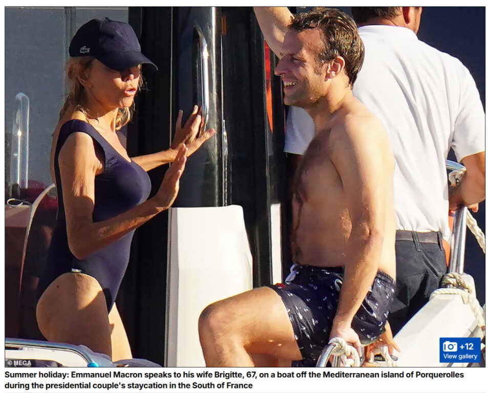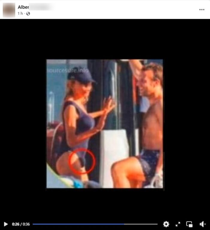 Il fotogramma successivo mostra Brigitte Macron in costume da bagno, facendo intendere che il costumi dimostri la presenza dell’organo maschile.
