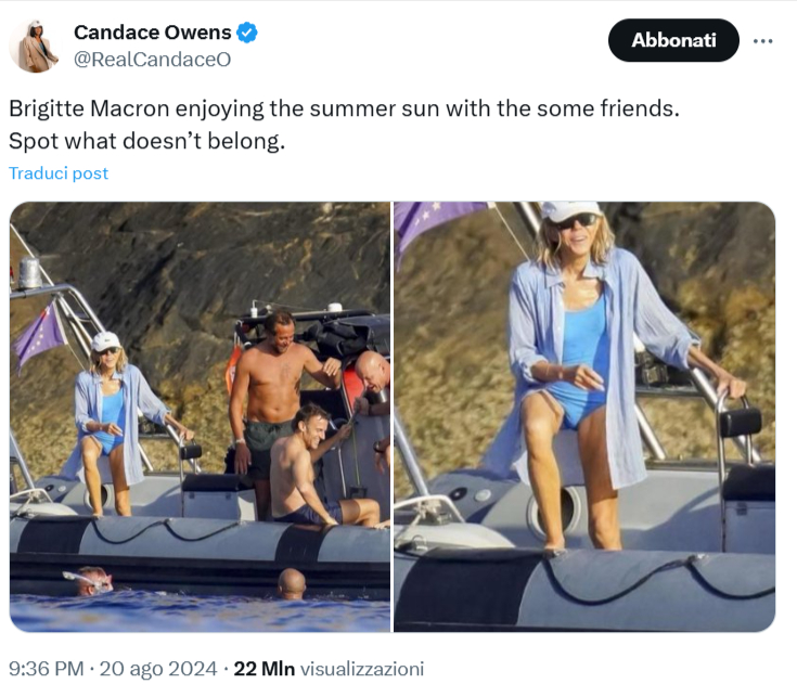 Lo stesso dettaglio venne proposto da Candace Owens, l’influencer americana denunciata per diffamazione dai Macron in quanto promuove la teoria del complotto contro Brigitte.