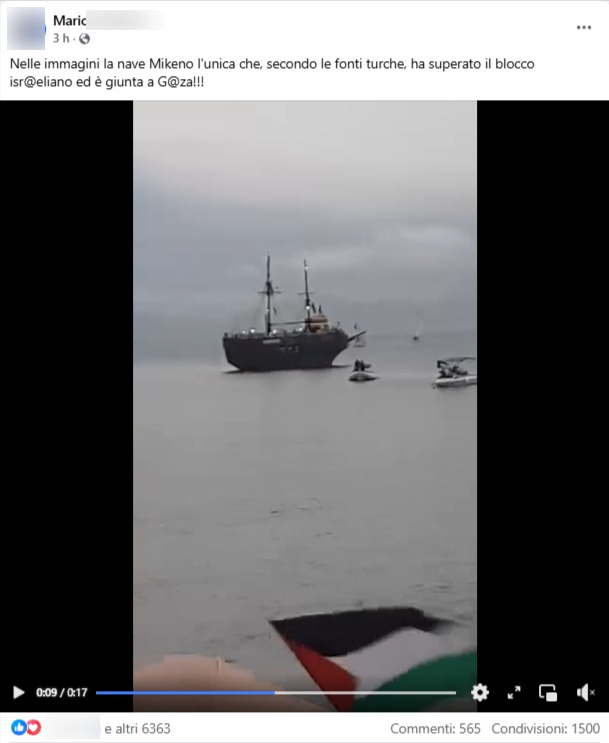 Il filmato non mostra l’arrivo della Mikeno a Gaza. Si tratta di un video datato, girato a Sidi Bou Said in Tunisia, e raffigura un’imbarcazione ben diversa.