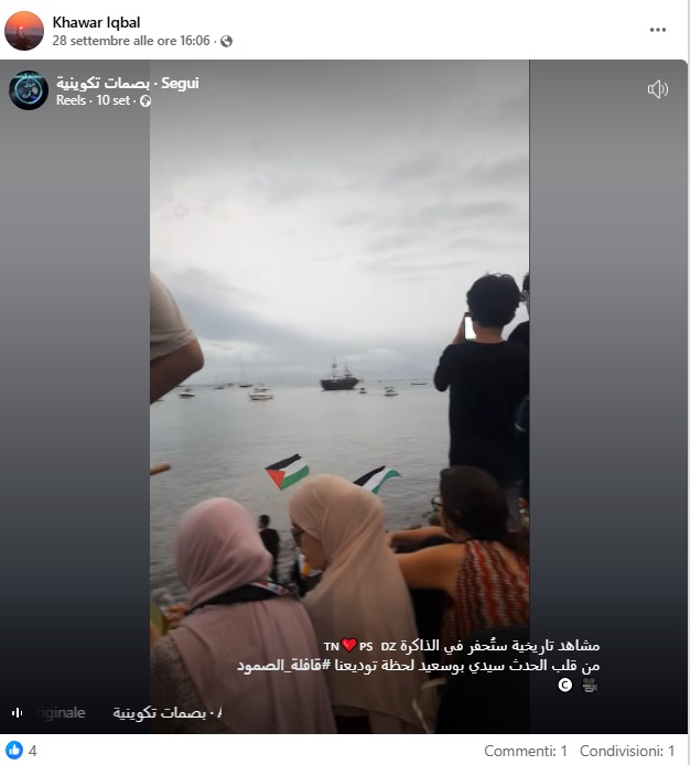 Il video risulta condiviso il 10 settembre 2025, settimane prima del presunto arrivo della Mikeno a Gaza. Nella descrizione leggiamo che si tratta del porto di Sidi Bou Said, a Tunisi.