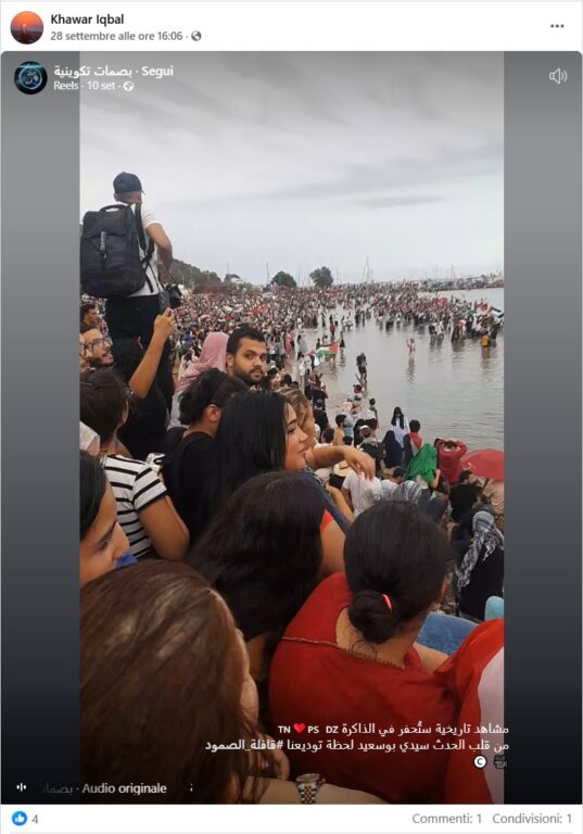 Il video risulta condiviso il 10 settembre 2025, settimane prima del presunto arrivo della Mikeno a Gaza. Nella descrizione leggiamo che si tratta del porto di Sidi Bou Said, a Tunisi.