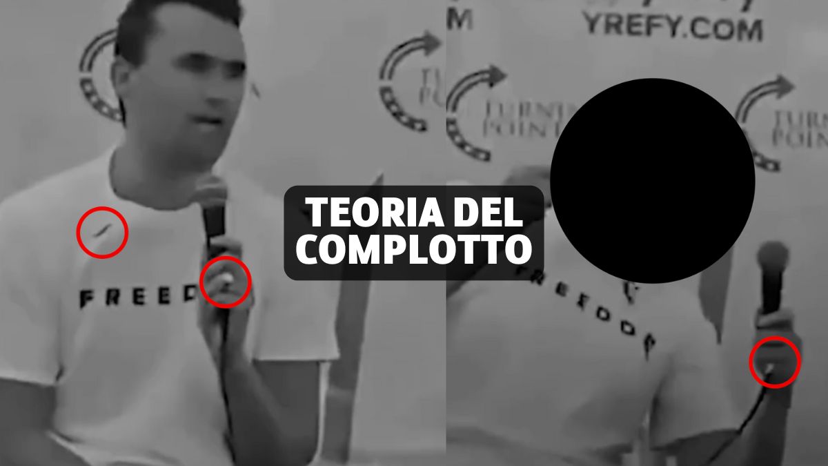 Molto probabilmente Kirk indossava spesso un piccolo microfono per registrare la voce pulita (ricordiamo che si trattava anche di un influencer di YouTube), assieme a uno più grande per farsi sentire dal pubblico presente all’evento.