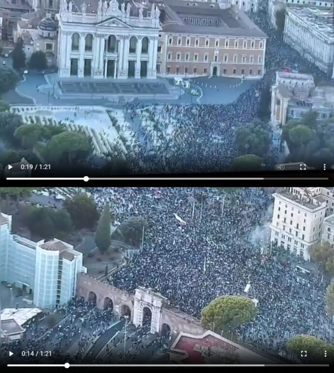 Considerando le immagini diffuse dai media e dalla Polizia di Stato, e soprattutto l’estensione reale dell’area percorsa dal corteo, risulta altamente improbabile che il 4 ottobre a Roma fossero presenti un milione di persone, anche ipotizzando una densità estrema. Lo stesso vale per le grandi manifestazioni politiche e sindacali del passato, dove anche allora le cifre dichiarate dagli organizzatori superavano di molto le reali capacità delle piazze della Capitale.