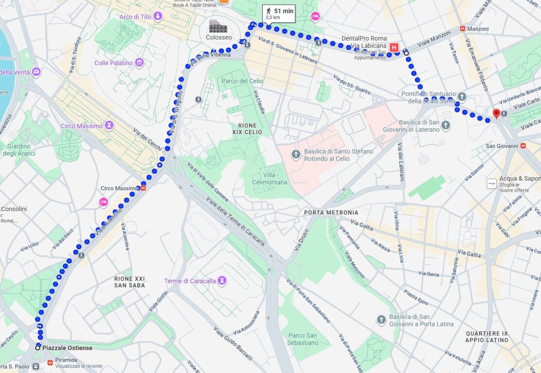 Anche in questo caso, con 4 persone per metro quadrato, il totale massimo sarebbe circa 807 mila persone, sempre inferiore al milione. Se invece teniamo conto dell’intero percorso da Piramide a San Giovanni, considerando tutta piazzale Ostiense, si potrebbero stimare 808 mila persone (parliamo di 5 persone per metro quadrato ferme sul posto senza muoversi).