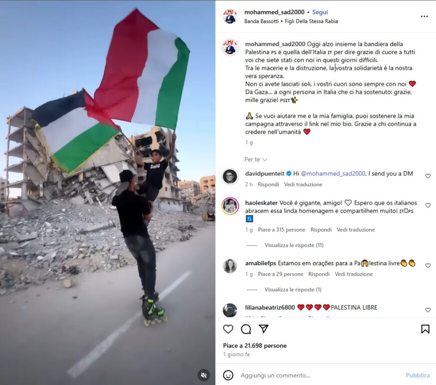 Mohammed è perfettamente consapevole dell’uso del suo video con la bandiera italiana da parte di testi. Lo ha fatto notare nei commenti al post Instagram di Tajani, contestando la pubblicazione del filmato in quanto fatta senza il suo consenso e chiedendo che venisse rimosso o che fosse indicato come autore originale: