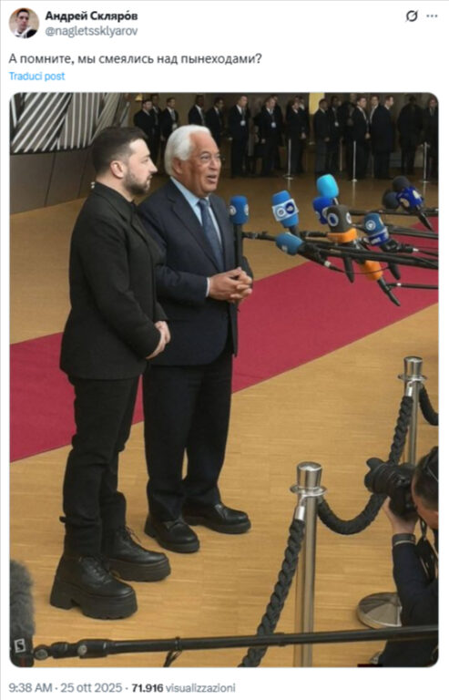 In un incontro successivo, datato 23 ottobre 2025, Zelensky indossava delle scarpe normalissime, senza alcun rialzo.