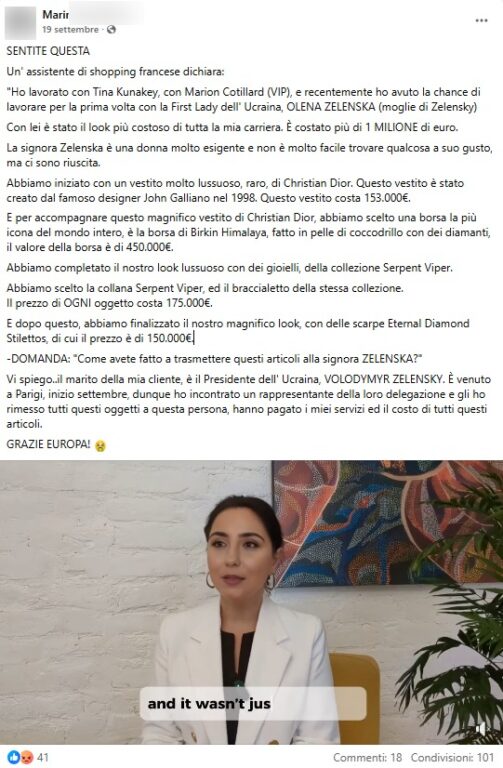 - Il video che accusa Olena Zelenska di aver speso oltre 1 milione di euro a Parigi è falso