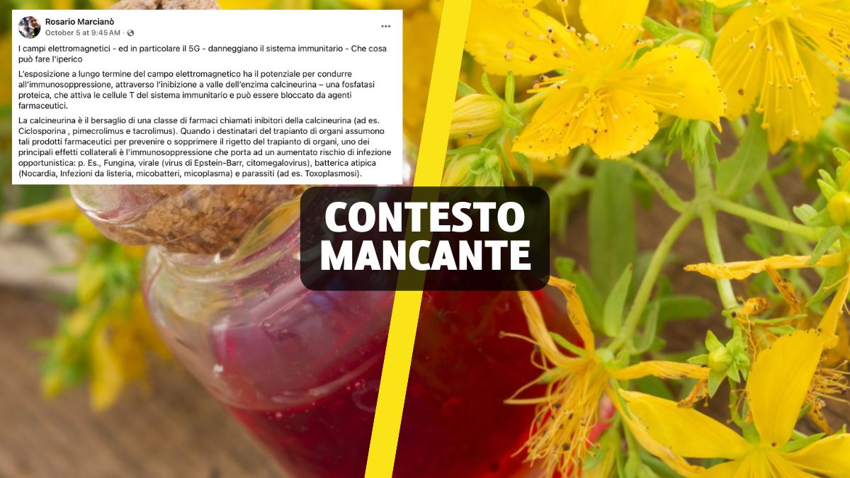 Dobbiamo occuparci di una nuova condivisione Facebook di Rosario Marciano. Torniamo a parlare di medicine alternative, più precisamente delle fantomatiche proprietà dell’Iperico (Hypericum perforatum), una pianta officinale nota anche come Erba di San Giovanni. Secondo Marcianò sarebbe un rimedio contro i danni dei campi elettromagnetici «e in particolare il 5G», nei confronti del sistema immunitario. Secondo la narrazione queste radiazioni, pur essendo non ionizzanti, avrebbero un effetto sull’inibizione dell’enzima calcineurina. Quindi si linka uno studio della rivista Medical Hypotheses. Anche se il nome dovrebbe già farci capire che non siamo di fronte a un lavoro che dimostra davvero qualcosa, abbiamo ugualmente letto l’articolo.