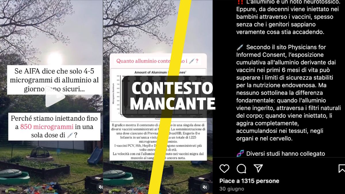- Secondo un reel di Instagram le quantità di alluminio nei vaccini supererebbero quelle consentite.