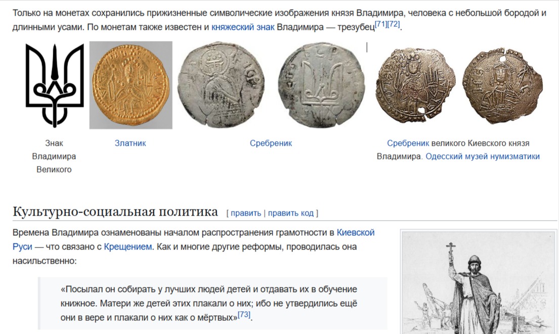 Il Tryzub (dal termine ucraino “тризуб”) è un antico simbolo risalente al regno di Volodymyr il Grande, sovrano della Rus’ di Kiev tra il 980 e il 1015, periodo precedente alla nascita di Mosca. Di fatto, compare su monete e sigilli del tempo come emblema del potere reale. L’ambasciatore russo in Italia avrebbe potuto controllare la voce Wikipedia del Gran Principe di Kiev in lingua russa, dove avrebbe trovato il tridente nelle monete.