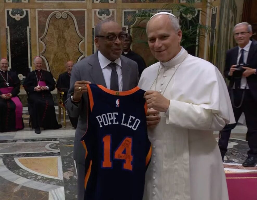 Spike Lee emozionatissimo regala a “Pope Leo” una maglietta Nba con il suo nome