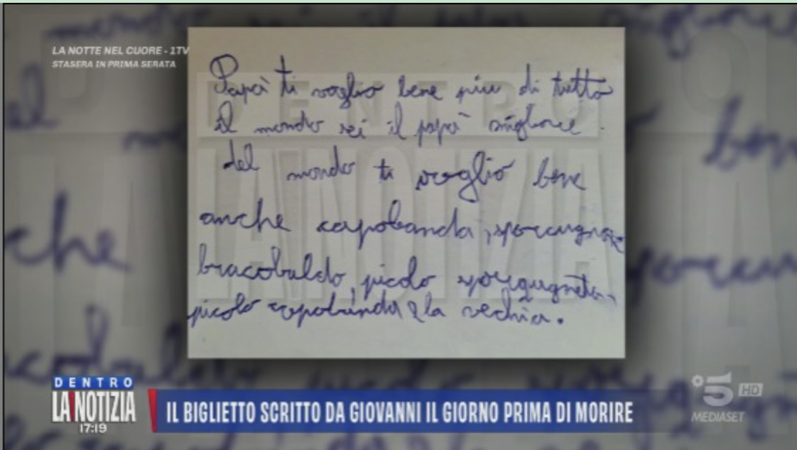 Giovanni sgozzato dalla mamma, il biglietto al padre prima di morire: «Ti voglio bene più di tutto il mondo». E spunta un audio della donna