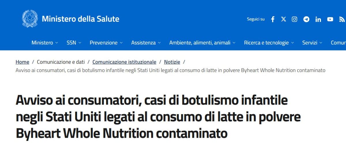 In America il latte è stato collegato a un’epidemia di botulino in corso in questo periodo. Trattandosi di un prodotto venduto anche online attraverso le principali piattaforme di e-commerce tra cui Amazon, l’allerta è stata poi estesa a livello mondiale. Dopo una segnalazione di Infosan – network di autorità nazionali coordinato dalla Fao – il ministero è intervenuto con un avviso ai consumatori sul proprio portale dedicato ai richiami di prodotti alimentari. Intanto, negli Stati Uniti è in corso il ritiro di tutti i prodotti a marchio ByHeart e i clienti che hanno acquistato i prodotti dell’azienda su Amazon risulterebbero essere stati avvisati dal rivenditore.