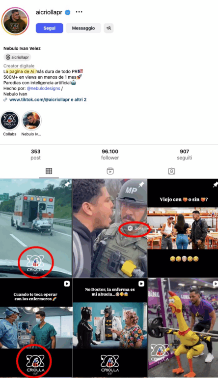 Inoltre, la barella nel filmato rimane incredibilmente dritta e procede in modo fluido dopo l’impatto con l’asfalto, un comportamento fisicamente impossibile. Infine, ripercorrendo la diffusione del video è possibile risalire all’account del creator Nebulo Ivan Vélez, conosciuto come “AI Criolla PR”, che ha pubblicato il video originale il 2 novembre 2025 su Instagram, con il suo logo chiaramente visibile e dichiarando apertamente che si tratta di un contenuto creato con intelligenza artificiale. Nella versione virale, il watermark è stato rimosso ridimensionando la clip per nascondere la natura artificiale del video.