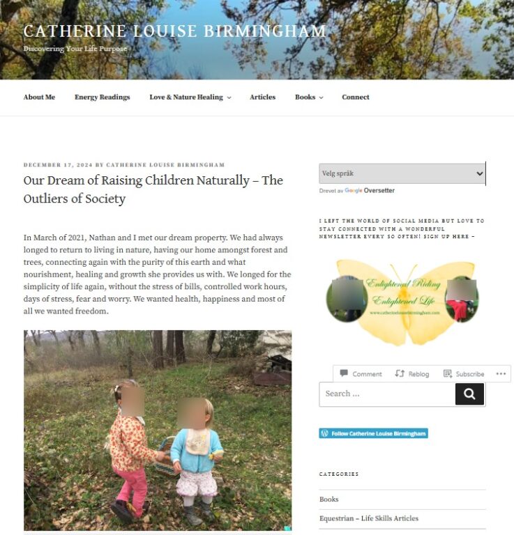 In fondo alla testimonianza, il sito dell’AIN riporta due link del blog di Catherine Birmingham. Uno di questi rimanda a un articolo intitolato “Our Dream of Raising Children Naturally – The Outliers of Society”, che si inserisce nel contesto della scelta della famiglia di vivere come “neorurali” nei boschi intorno a Chieti e della loro adesione all’Unschooling.