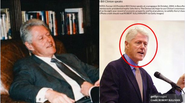 Anche senza watermark, la fotografia rimane comunque incoerente con la realtà storica. Bill Clinton aveva subito un intervento al cuore il 6 settembre 2004. La sua convalescenza durò settimane, durante le quali comparve poche volte in pubblico, sempre molto provato, con i capelli completamente bianchi e un aspetto decisamente affaticato. Le immagini e i video ufficiali del 25 e 26 ottobre 2004, la sua prima serie di apparizioni pubbliche, lo mostrano: magro, pallido, con capelli significativamente più bianchi e visibilmente debilitato dall’intervento. Nulla a che vedere con il Clinton ritratto nella foto virale.