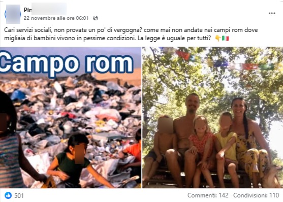 Circola una foto di tre bambini tra cumuli di rifiuti, rilanciata sui social come presunta prova delle condizioni nei campi rom. L’immagine viene usata per alimentare il confronto con il caso della cosiddetta famiglia del bosco e per accusare istituzioni e media di doppi standard. Ma la foto non ha alcun legame con le comunità rom, in quanto fa riferimento a un’altra realtà.