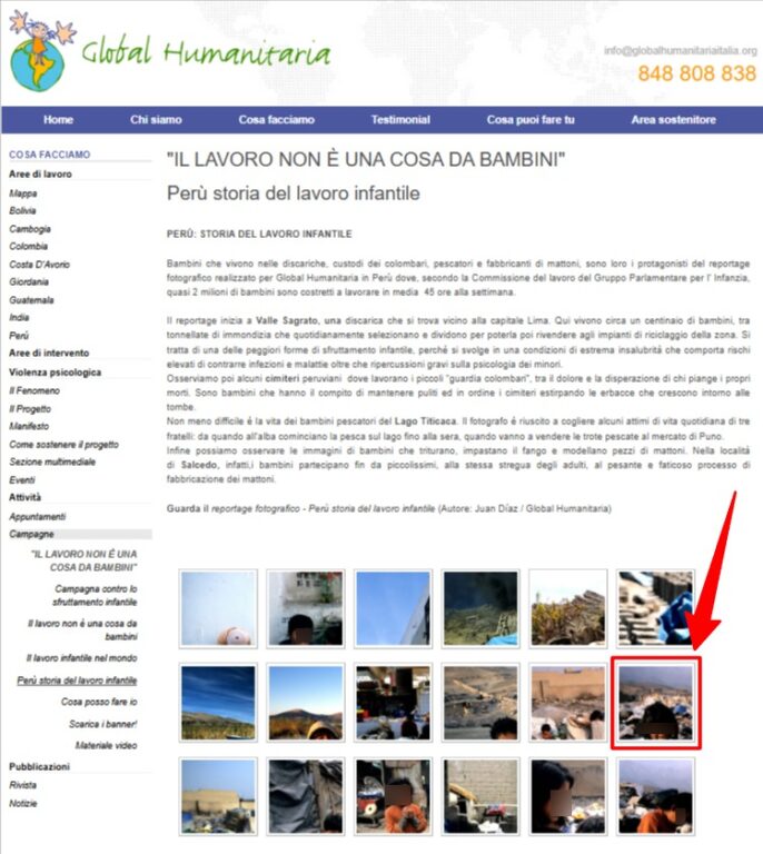 Grazie alla ricerca Google è possibile riscontrare la vera storia della foto dei bambini. Lo scatto originale (vvs_lima_03.jpg) fa parte di un reportage realizzato a Valle Sagrato, una discarica vicino a Lima, in Perù, realizzato da Juan Diaz per Global Humanitaria:
