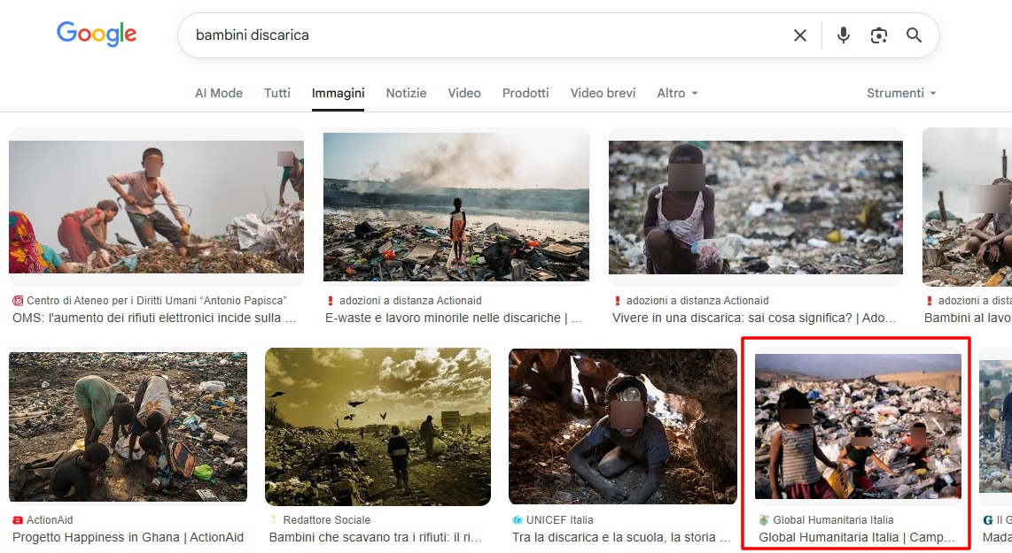 L’immagine è facilmente rintracciabile attraverso una ricerca Google con le parole “bambini discarica“.