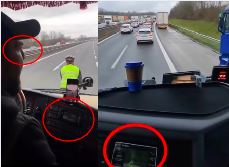 I presunti camionisti hanno spesso volti eccessivamente lisci e privi di imperfezioni, caratteristiche tipiche dei modelli video IA. Le espressioni sono rigide e innaturali, e i movimenti incoerenti con la scena. In un video, l’uomo alla guida sembra guardare costantemente nella direzione sbagliata, né verso la strada né verso il ciclista che dovrebbe “riprendere”. In un altro, un cavo appare avvolto attorno alla gamba del camionista, ma emerge dal nulla e scompare dietro di lui.