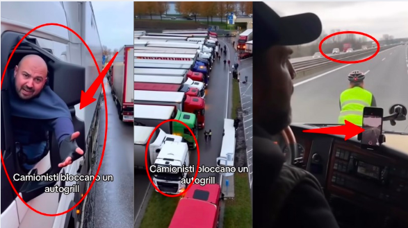 I video dei camionisti infuriati che protestano contro il prezzo del carburante non documentano alcun fatto reale. Provengono tutti da un unico account Facebook che diffonde contenuti creati con l’intelligenza artificiale, e presentano una lunga serie di incongruenze.