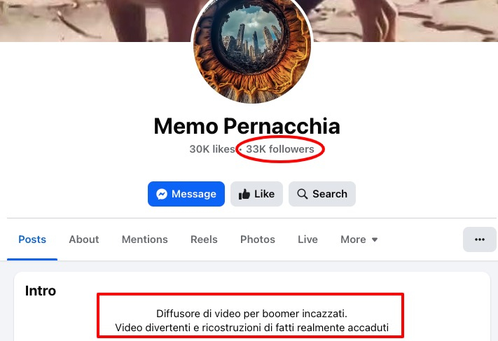 - Tutti i filmati provengono dallo stesso account Facebook, che diffonde contenuti creati con IA.