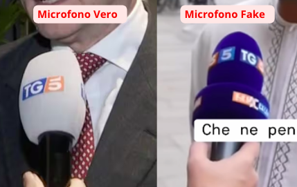 - Logo TG5, microfono, volti e movimenti sono falsi o distorti.