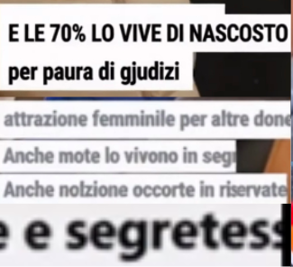 Il primo video finge di essere un servizio del TG5 che dichiara che “un uomo su due” sarebbe attratto da altri uomini, estendendo la stessa statistica alle donne. Non esistono studi o sondaggi di alcun tipo che riportino tali dati, e il giornalista mostrato nel filmato non esiste. Inoltre, come sottolineato prima, le scritte in sovrimpressione sono piene di errori, il logo è sbagliato e il volto della conduttrice è chiaramente frutto dell’intelligenza artificiale.