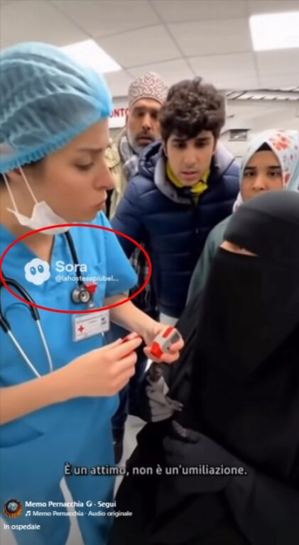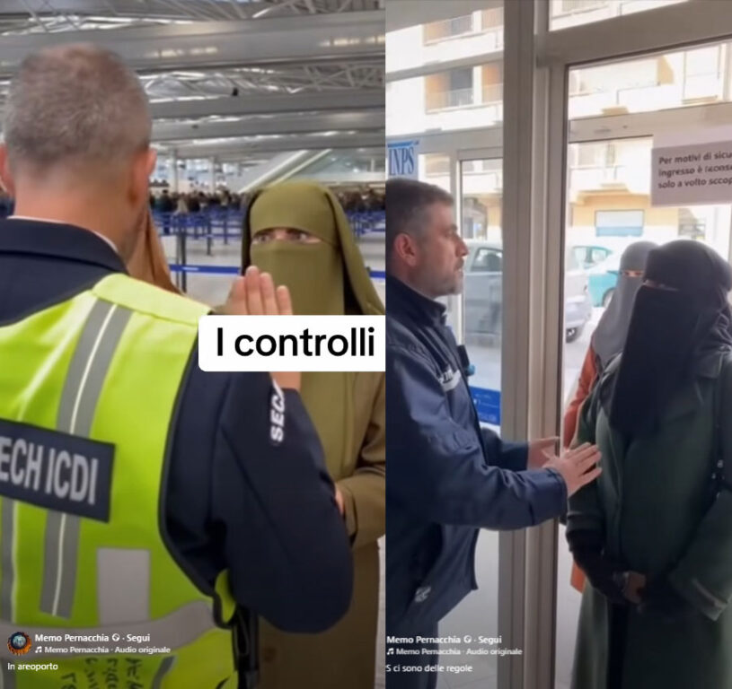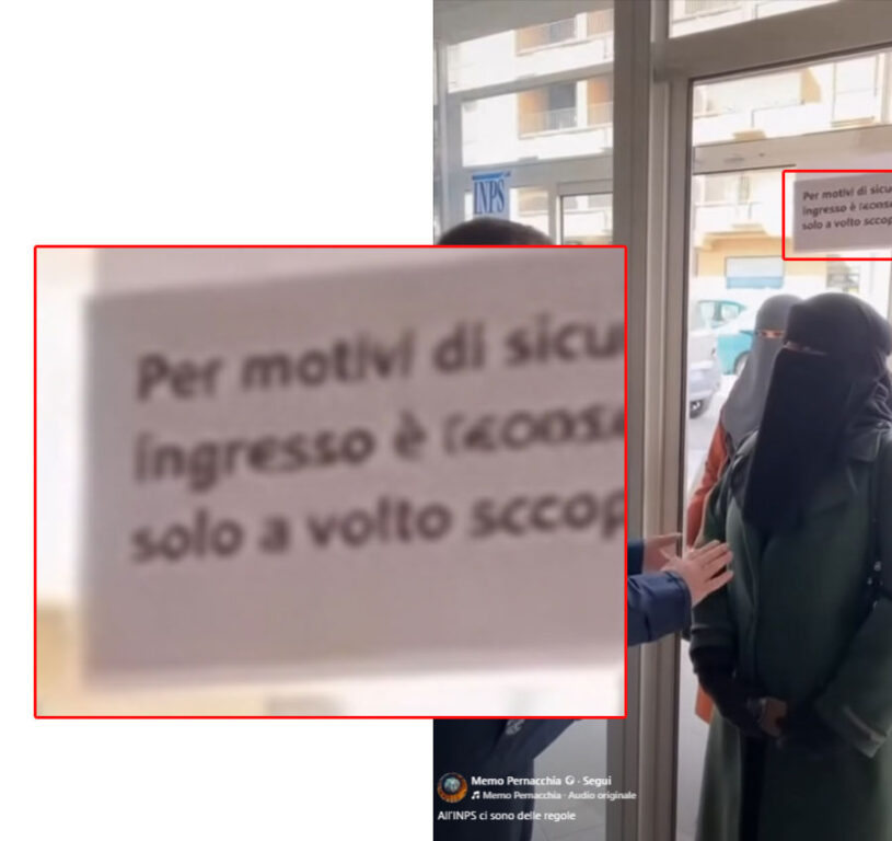 Circolano diversi video che riprendono donne con il burqa discutono con un addetto della sicurezza all’Inps o davanti allo sportello dell’anagrafe. In altri casi vengono bloccate all’interno di un aeroporto o bloccate all’ingresso di Gardaland. Numerose clip di questo genere riprendono la stessa narrazione, dove le donne si lamentano in quanto si rifiutano di mostrare il loro volto in pubblico per via della loro religione, ma risultano generate dall’Intelligenza Artificiale.