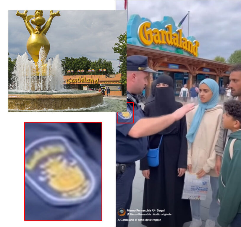 Nel caso del video di Gardaland, l’entrata del parco divertimenti non corrisponde. Il logo dell’agente non è chiaro.