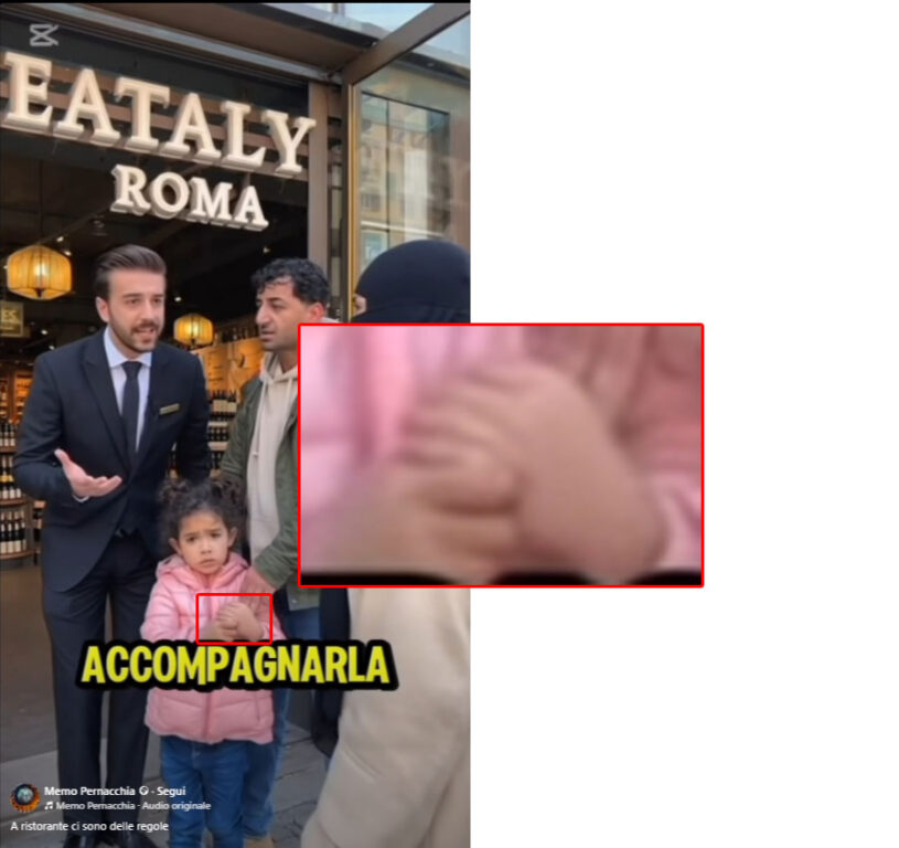 La scena davanti al fantomatico Eataly Roma riporta una bambina con troppe dita nelle mani.