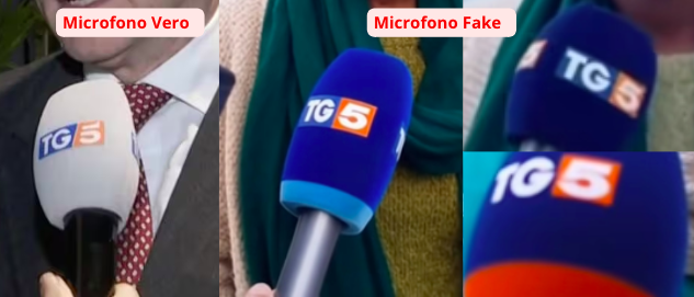- I loghi del TG5 e il microfono sono falsi.