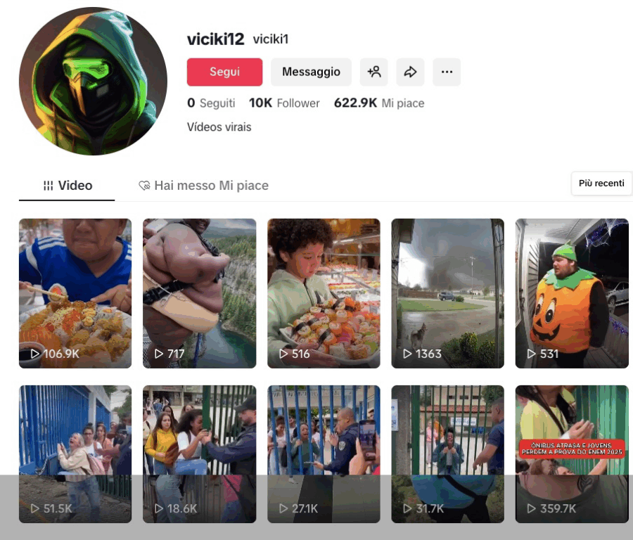 Effettuando una ricerca per immagini, nei video meno ritagliati compare il watermark di TikTok con il nome dell’account @viciki12. Visitando il profilo, si scopre che questo pubblica esclusivamente video creati con strumenti di intelligenza artificiale, confermando che la clip non ritrae una persona reale e non proviene dal fronte ucraino.