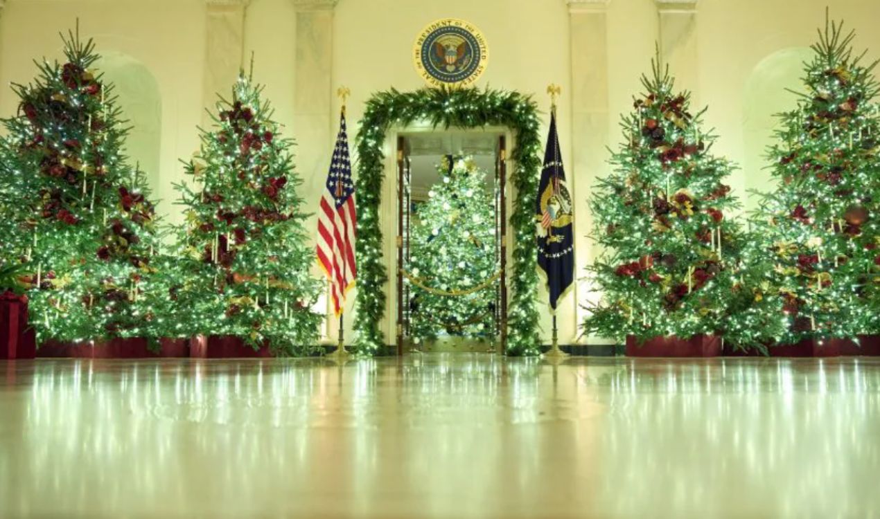 Il lavoro per trasformare la residenza presidenziale in un simbolo di festa è stato titanico. Si parla di almeno 1.500 volontari che hanno impiegato una settimana per addobbare oltre 50 alberi di Natale, installare 210 metri di ghirlande e distribuire 7.600 metri di nastri, mentre Hervé Pierre ha curato la direzione creativa degli allestimenti. Simbolo ricorrente in tutti gli spazi è la farfalla, emblema di trasformazione e rinnovamento, che accompagna elementi più tradizionali come le 75 ghirlande con fiocchi rossi alle finestre. Ogni dettaglio riflette un intento. Dall’albero principale nella Sala Blu, alto 5 metri e decorato con ornamenti che omaggiano i 50 stati, gli eserciti e le famiglie Gold Star, fino ai colori patriottici rosso-bianco.blu della East Room, in vista del 250° anniversario degli Stati Uniti.