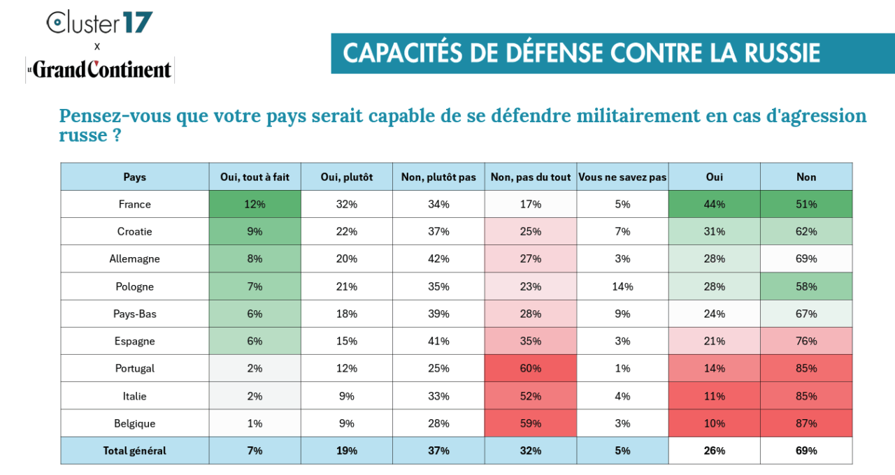 Oltre la metà degli europei teme che la Russia si prepari a entrare apertamente in guerra contro il proprio Paese. Gli italiani sono su questo un po’ meno pessimisti della media, vede un rischio elevato in tal senso “solo” un cittadino su tre. Ma una maggioranza schiacciante pensa che se così fosse, se cioé davvero Vladimir Putin dovesse muovere guerra direttamente contro l’Europa, l’Italia soccomberebbe. «Non sarebbe in grado di difendersi», valuta l’85% degli italiani. Cifra record in Ue: solo in Belgio le persone vedono più nero (87%). Sono i dati che emergono da un sondaggio condotto in nove paesi europei da Cluster 17 per la rivista di geopolitica Le Grand Continent e pubblicato stamattina. Tra le opinioni pubbliche del continente per la verità il pericolo numero 1 in termini di sicurezza resta quello delle organizzazioni terroristiche. Sono di questa matrice gli attacchi che gli europei più temono per il futuro: due su tre nella media, con un picco di paura in Francia – che ha appena commemorato i 10 anni dell’assalto islamista al Bataclan – dell’86%. Segue, appunto, lo spettro del militarismo russo: l’81% degli europei ha smesso da tempo di credere alle fandonie di Putin e non crede che Mosca voglia la pace.