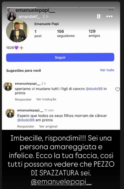 Di fronte a uno scenario mai visto da decenni – l’ultima retrocessione in Serie B risale al 1993 – i tifosi viola sono increduli, disorientati e arrabbiati. Sentimenti che trovano sfogo, come ovvio, anche sui social. Oggi però qualcuno lo ha fatto andando davvero oltre il limite, arrivando a minacciare personalmente non solo i giocatori, ma perfino i loro famigliari. A scovare e additare al pubblico ludibrio il leone da tastiera è stata Amanda Ferreira, moglie del difensore viola Dodô, preso particolarmente di mira. «Speriamo vi muoiano tutti i figli di cancro, Dodô in primis», le parole inqualificabili postate in un commento al post con cui la Fiorentina annunciava su Instagram in risultato del match col Sassuolo. Ferreira infuriata prima ha segnalato il post alle autorità, poi ha postato lo screenshot della minaccia, inviando a lui e a ogni altro hater un chiaro messaggio: «Aspettatevi la polizia a casa vostra, Internet non è una terra senza legge dove potete dire quello che volete e farla franca. BASTA, TUTTO HA UN LIMITE. Aspettate la vostra causa, perché andrò all’inferno a cercarvi». Secondo quanto riporta l’Ansa, anche le compagne di altri giocatori viola sarebbero state bersaglio di messaggi offensivi e minacciosi e avrebbero sporto denuncia.