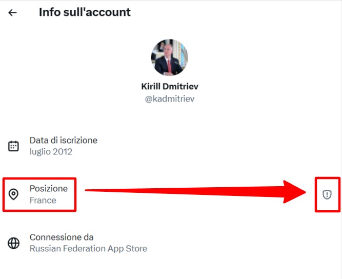 In questo contesto, l’attacco di Dmitriev all’Unione europea assume un tono grottesco, soprattutto considerando che la stessa Russia da anni calpesta la libertà d’espressione contro le piattaforme social occidentali. L’autorità russa per il controllo dei media, il Roskomnadzor, aveva iniziato a limitare la piattaforma X (all’epoca Twitter) all’inizio dell’invasione dell’Ucraina, al fine di controllare la narrazione sulla guerra e impedire ai cittadini di accedere a informazioni indipendenti. Di fatto, lo stesso Kirill (e non solo lui) deve usare una VPN per accedervi e pubblicare i suoi attacchi contro l’Unione europea, come mostrato dalla piattaforma stessa: l’icona dello scudo con il punto esclamativo, presente tra le info dell’account, indica proprio l’uso di una connessione mascherata.
