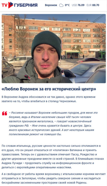 Nel luglio 2025 il media russo Gubernia TV pubblicava un lungo articolo sulla cittadinanza russa appena ottenuta da Lucidi a Voronezh, dove lo stesso avrebbe dichiarato di essersi trasferito.