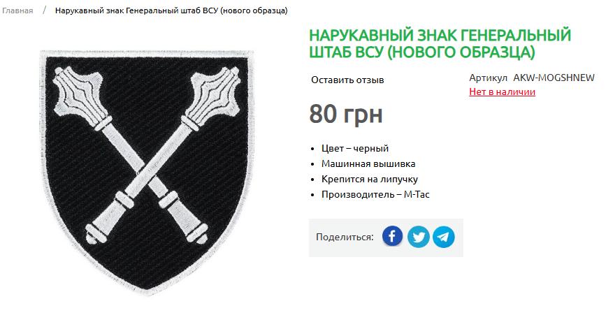 Lo stemma presenta, invece, due Pernach, un tipo di mazza medievale usata dai Rus’ di Kiev. La toppa è acquistabile online dai siti ucraini. Ricordiamo che i simboli nazisti non possono essere venduti in Ucraino in quanto vietati per legge in Ucraina dal 2015 insieme ai simboli comunisti.