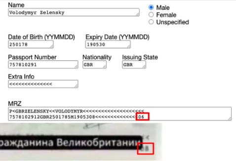 Il passaporto britannico non rispetta gli standard MRZ: Ogni passaporto valido ha una zona leggibile a macchina (MRZ), una sezione con caratteri standardizzati contenente numero del passaporto, nome, data di nascita, scadenza e codice del paese. In questo caso, i numeri di documento non corrispondono e il checksum è invalido: la MRZ include un checksum, un numero di controllo che verifica matematicamente la correttezza dei dati. Se il checksum non corrisponde, significa che il documento è stato compilato o manipolato in modo errato e non rispetta gli standard internazionali ICAO, quindi è quasi certamente falso. Come verificabile tramite MRZ Decoder, il documento in questione è un falso. Inoltre, il Regno Unito rilascia passaporti solo a cittadini britannici attraverso procedure ufficiali, e non esistono “passaporti segreti” per stranieri.