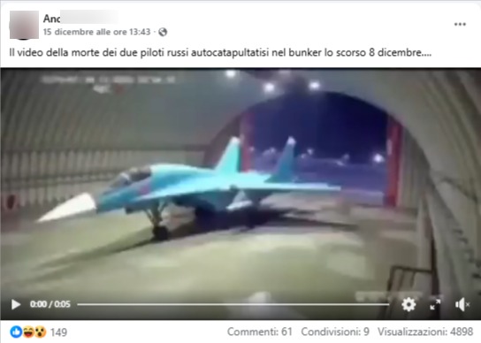 Lo stesso contenuto circola anche su X con la seguente didascalia: «Il video epico della morte dei due piloti russi autocatapultatisi nel bunker lo scorso 8 dicembre».