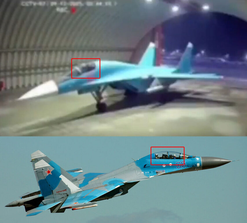 Uno degli elementi più evidenti riguarda la presenza dei piloti. L’abitacolo non risulta coerente con quello della tipologia di velivolo rappresentato (un Sukhoi Su-34) e, soprattutto, la posizione del secondo pilota, che viene mostrato erroneamente come “seduto dietro” il primo, non è presente all’inizio del video.