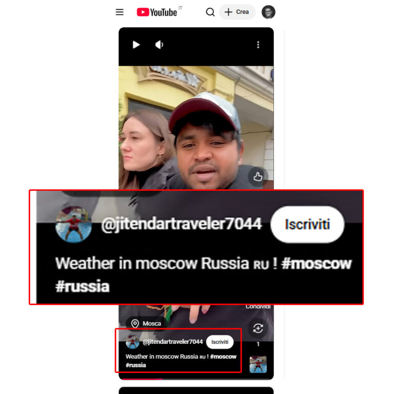 Il video originale, e completo rispetto a quello che circola con i falsi sottotitoli, è intitolato “Weather in moscow Russia! #moscow #russia”.