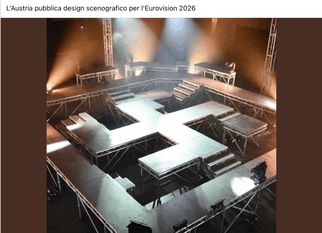 - Circola in rete la presunta immagine del palco di Eurovision 2026 a forma di svastica.