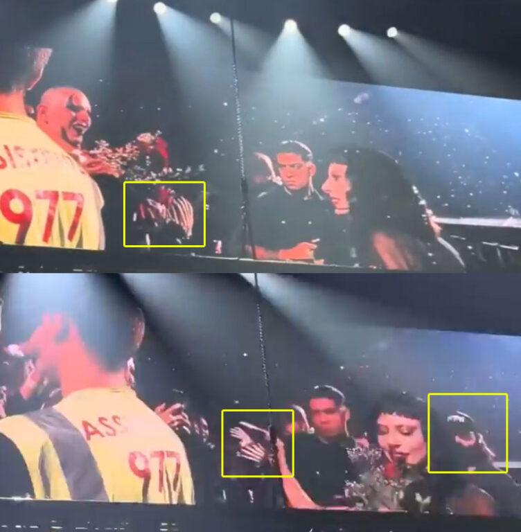 Nella clip si possono osservare due dettagli, ossia l’addetto che riceve la bandiera e una corona. Attraverso le parole chiave “Vanish Into You” e “Italy”, inserite nel motore di ricerca di Youtube, è possibile identificare una delle due date del suo concerto a Milano dell’ottobre 2025.